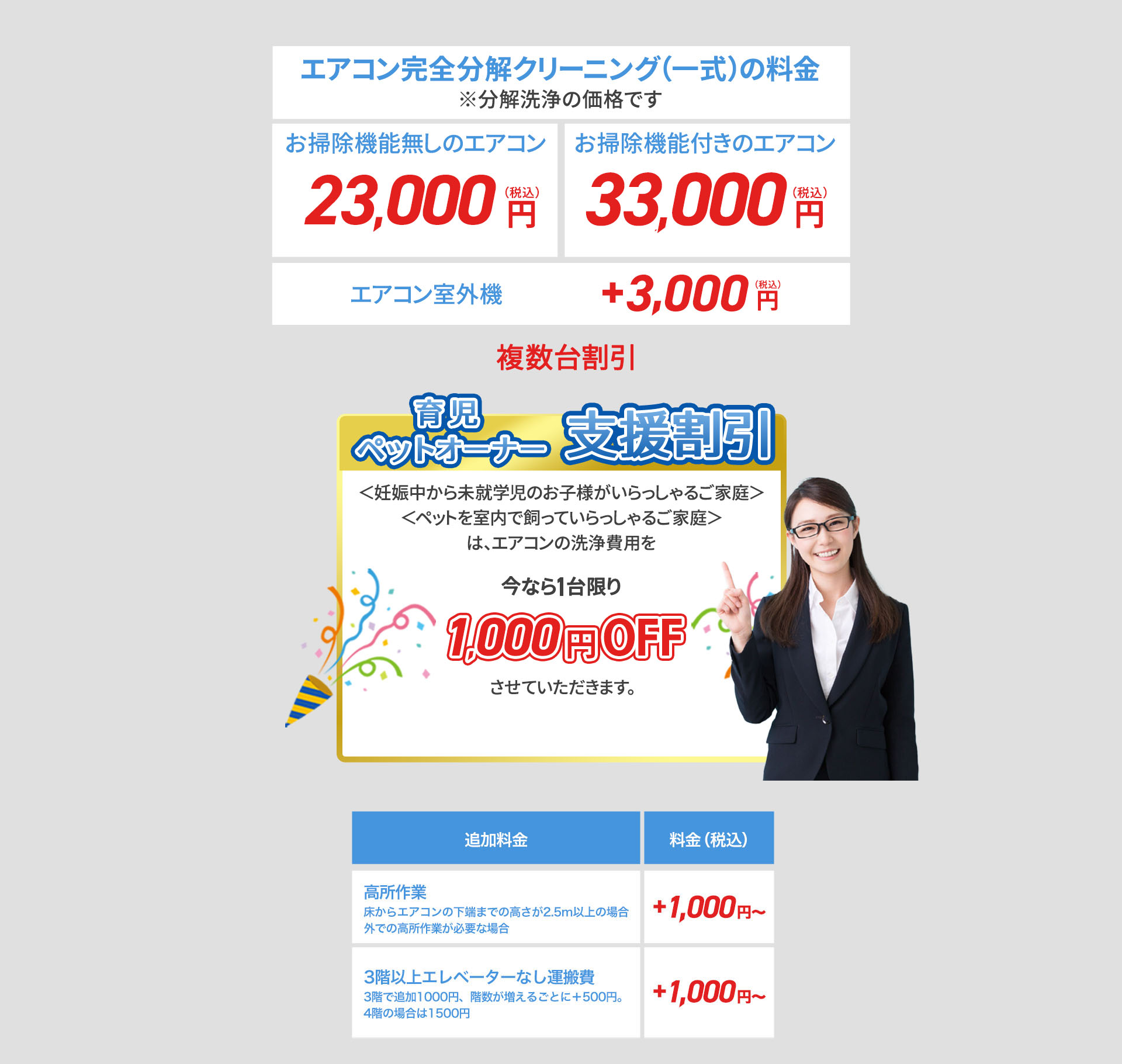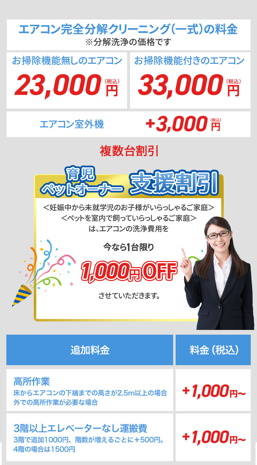 A.汚れにより、料金が変わることはありません。また、掲示以外の追加料金が発生することはありません。ただ、ニオイの原因としてドレンホース(エアコン内部の水分を外に逃がすための管)の汚れ、つまりが疑われ、交換したほうがニオイが改善する場合があります。そのご提案から交換が発生した際、別途費用がかかります。